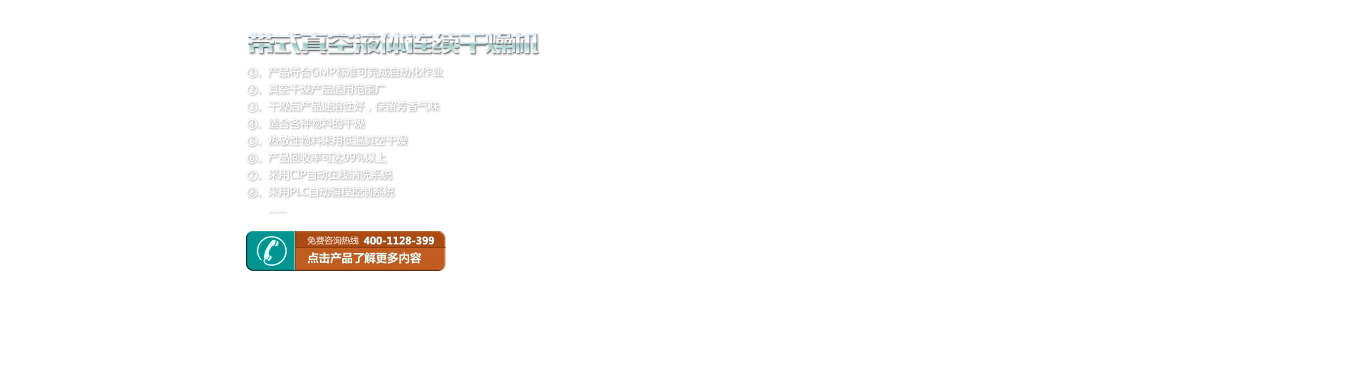 本機(jī)克服上述存在的許多問(wèn)題,即干燥溫度低,有效成分不流失,干燥時(shí)間短、能耗低、無(wú)污染,能連續(xù)生產(chǎn)。 |