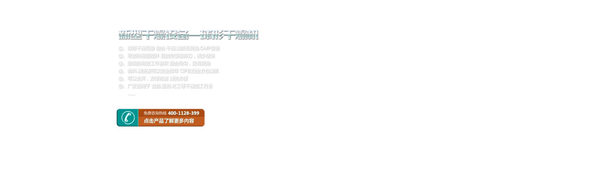 球形干燥設(shè)備 混合.干燥.清洗無(wú)死角.GMP設(shè)備 可加熱貼面攪拌 另加安裝破碎刀,減少結(jié)塊 較高的有效工作容積 混合均勻,沒(méi)有死角 物料.清洗液可以完全排盡 CIP在線全方位清洗 可以全開(kāi),方便檢查 清洗方便 廣泛適用于 食品.醫(yī)藥.化工 等干燥加工行業(yè) 設(shè)備模擬流程 設(shè)備選型 技術(shù)參數(shù) HCQG球形干燥機(jī) |