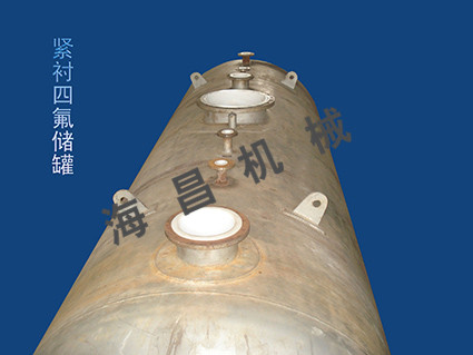 緊襯四氟是相對于我國目前大量采用的松襯工藝而言的,所謂松襯就是襯里四氟板與鋼體之間完全脫離,是兩個相對獨立的部分,在四氟板受到罐內液體壓力時,四氟板就會拉伸后與鋼體靠住,從而靠鋼體承受液體壓力。松襯在大型設備時必須要分段,加法蘭聯(lián)接,這樣設備將會增加多個法蘭,產生多個密封面,由于設備大而法蘭的平整度就會大大降低,因此在溫度變化時,聯(lián)接法蘭就會變形,聯(lián)接法蘭的螺栓就會受力不同,從而導致螺栓松動,出現(xiàn)泄露,這樣就必須更換墊片,重新聯(lián)接。隨著時間的推移,每次更換墊片的周期會越來越短,這對大型儲罐將是致命的。其次隨著罐內液位的變化,四氟板就不斷的鼓起和靠近罐體,四氟板和焊縫不斷壓縮和拉伸,這樣就會使四氟板出現(xiàn)破裂,罐內的腐蝕性液體就會流入鋼體內,很快鋼體就腐蝕穿孔,造成嚴重的泄露事故。第三,由于是松襯,四氟板與鋼體之間會有較大距離,這樣就會導致電火花檢測無法將四氟板上的缺陷檢出,而當罐內儲滿腐蝕性液體時,四氟板就會出現(xiàn)針孔泄露,繼而造成鋼體的腐蝕,反過來又會影響內襯的四氟板,使得針孔擴大,這樣就產生嚴重的泄露事故。總之松襯工藝有其固有的工藝缺陷,而這些缺陷將會對大型的襯里設備產生嚴重的后果,甚至出現(xiàn)重大事故。因此國外早在上世紀八十年代就采用緊襯工藝取代松襯,而使大型襯四氟設備進入了一個穩(wěn)定可靠和長期安全使用的時代。